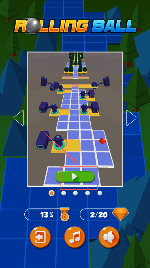 1、点击开始按钮进入游戏界面,准备控制小球进行滚动冒险挑战,熟悉基本操作方式。