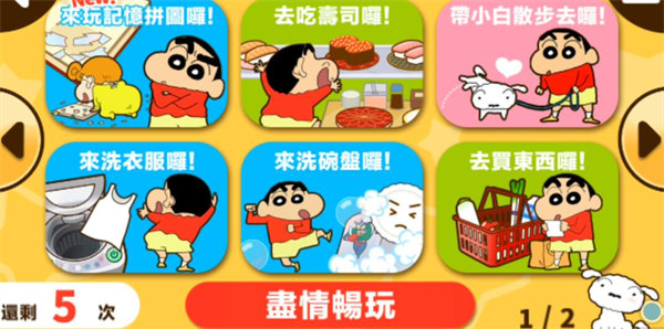 蜡笔小新之小帮手大作战手游中可爱的动漫画风,在游戏中你将扮演小新,体验一下他的生活日常,在游戏中你经常会遇到各种难题,你需要用你的智慧来解开难题,游戏中的玩法非常丰富,不断地完成挑战,解锁更多的游戏场景,喜欢的朋友赶紧下载体验吧。