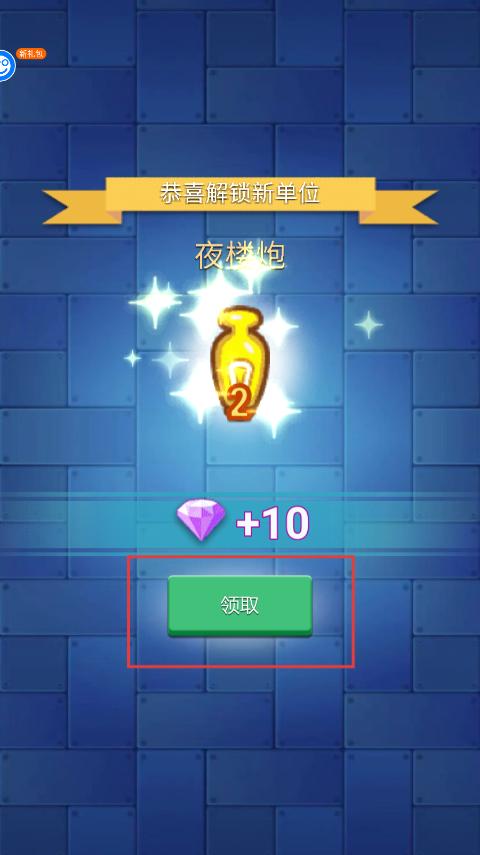 2、成功击败怪物后可解锁新型作战单位,并领取包含夜楼炮及10颗钻石在内的通关奖励资源。
