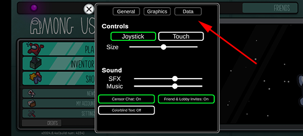2、进入设置菜单后选择“数据”选项,该栏目包含游戏基础参数与个性化自定义相关配置内容。