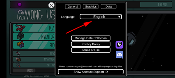 3、在参数列表内定位语言设置项,当前默认显示为英文,需点击展开更多语言选项进行切换。
