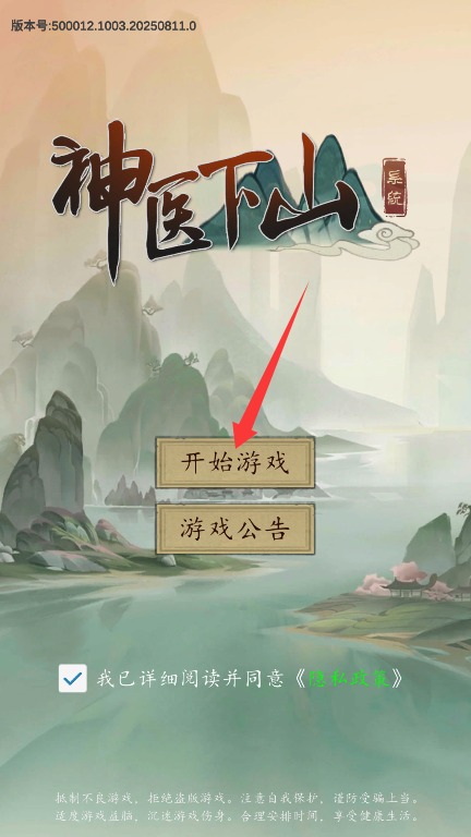 1、启动游戏后点击"开始游戏"按钮进入主界面,创建角色后开启神医修行之旅。