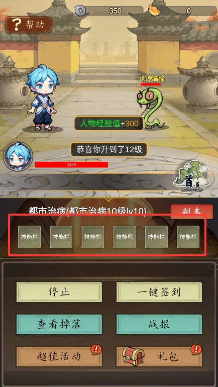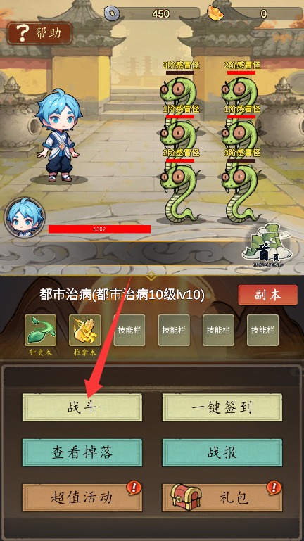 4、点击战斗按钮进入游戏副本,通过施展医术治愈击退患者提升神医声望等级。
