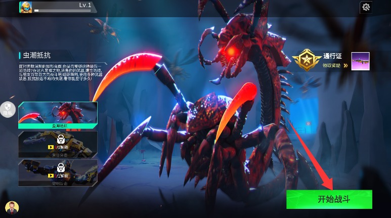 2、从多个战斗地图中选择作战场景,点击开始战斗按钮进入装备选择界面。