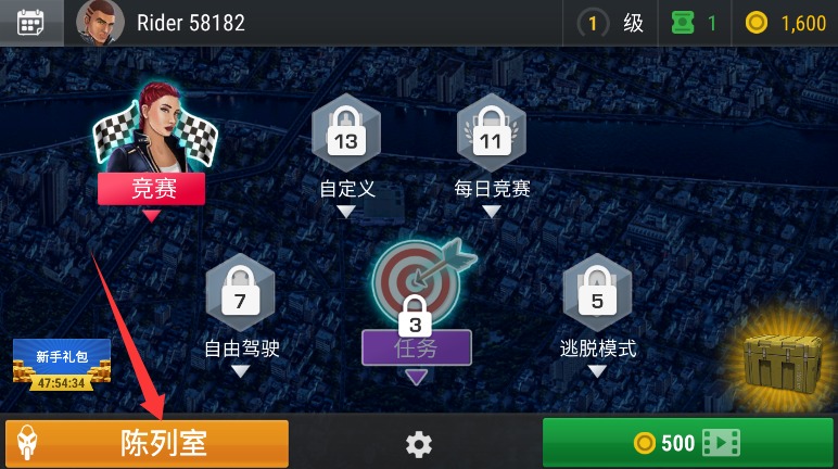 1、进入游戏后点击陈列室功能浏览车辆库,选择心仪摩托车或进行改装升级。
