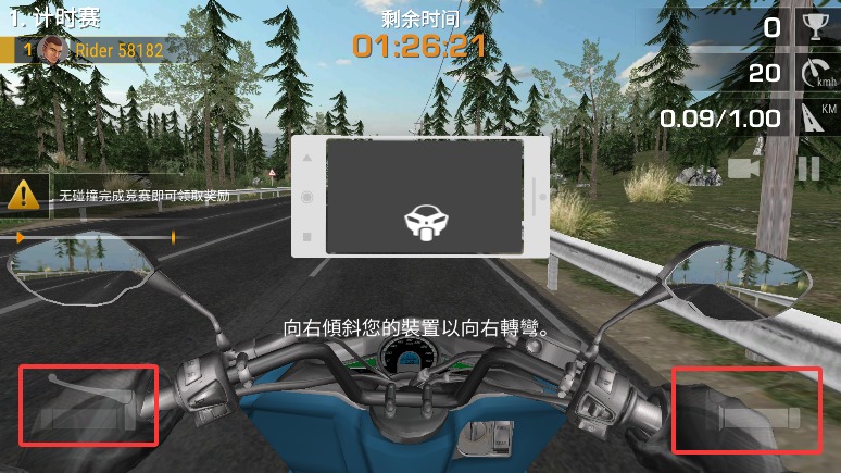 4、比赛时点击左下角按钮控制刹车,长按右下角油门按钮可实现持续加速。