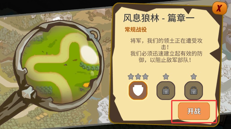 4、点击开始作战按钮释放敌人进攻,观察战斗效果并及时升级调整防御策略。