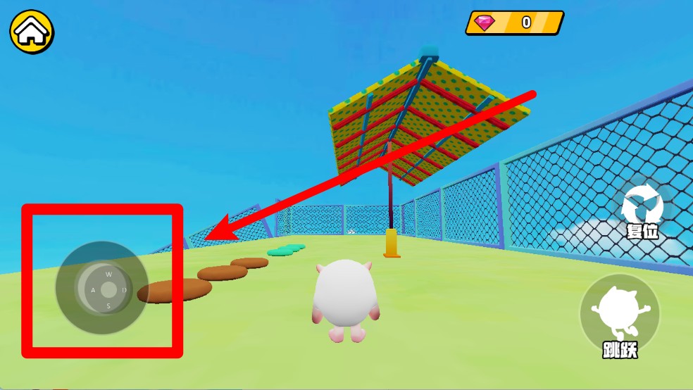 1.灵活移动:使用左下角虚拟摇杆操控角色,自由探索游乐园地图,躲避障碍物并寻找合适的路线完成关卡。