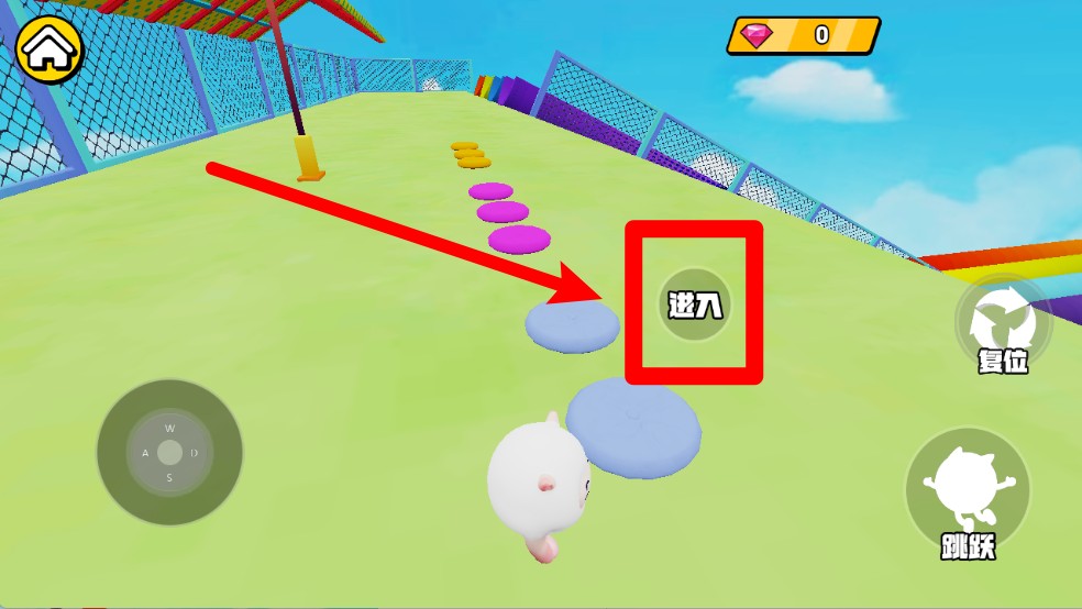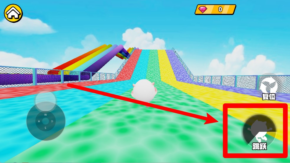 2.跳跃冲刺:点击右下角跳跃按钮可跃过彩色坡道和平台,合理运用跳跃动作能帮助你快速抵达更高区域。