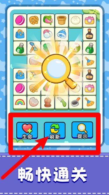 2.畅快通关:内置多种辅助道具,包括生命补充、刷新布局与提示功能,让玩家在遇到难题时依旧能顺利突破。