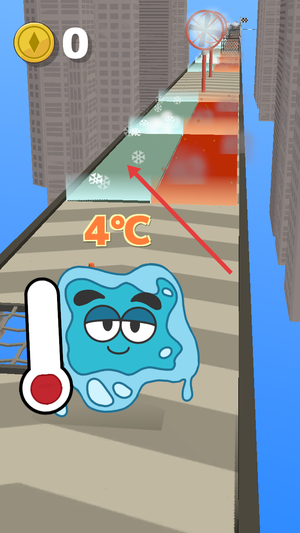 3、遇到标有雪花的低温区时,引导水块进入其中使其冻结成冰,冰块形态更稳定利于通过危险路段。