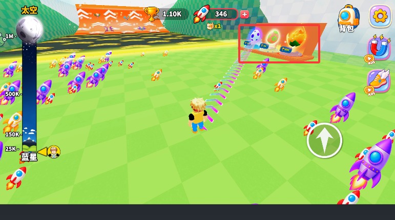 2、操控角色拾取场景中的火箭推进器道具,获得后可临时提升移动速度与跳跃高度。