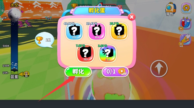 3、根据系统指引寻找隐藏在星球各处的神奇蛋,不同颜色的蛋会孵化出各类宠物。