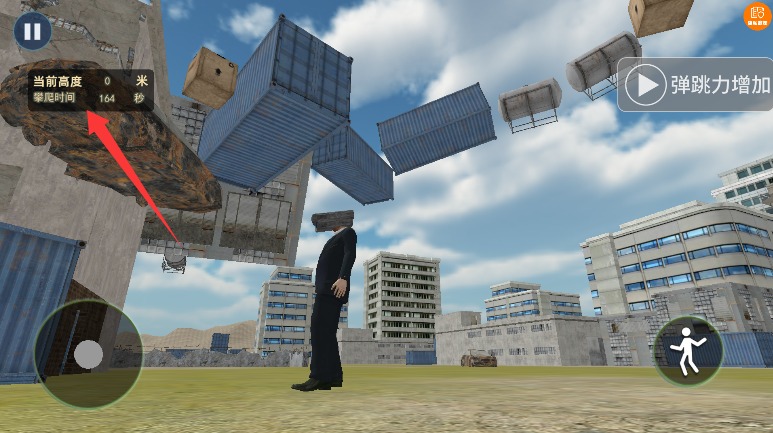 4、注意观察左上角显示的实时高度与用时数据,不断向上攀登创造新纪录。