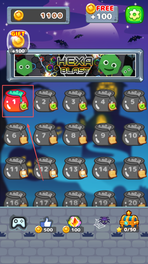 1、打开消灭糖糖进入关卡界面后,在众多关卡中挑选想挑战的那一个,点击对应的关卡图标就能进入游戏场景。