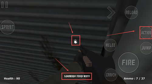 4、遇到上锁的门需先寻找对应钥匙,获取后返回门前点击ACTION互动开门进入新区域。