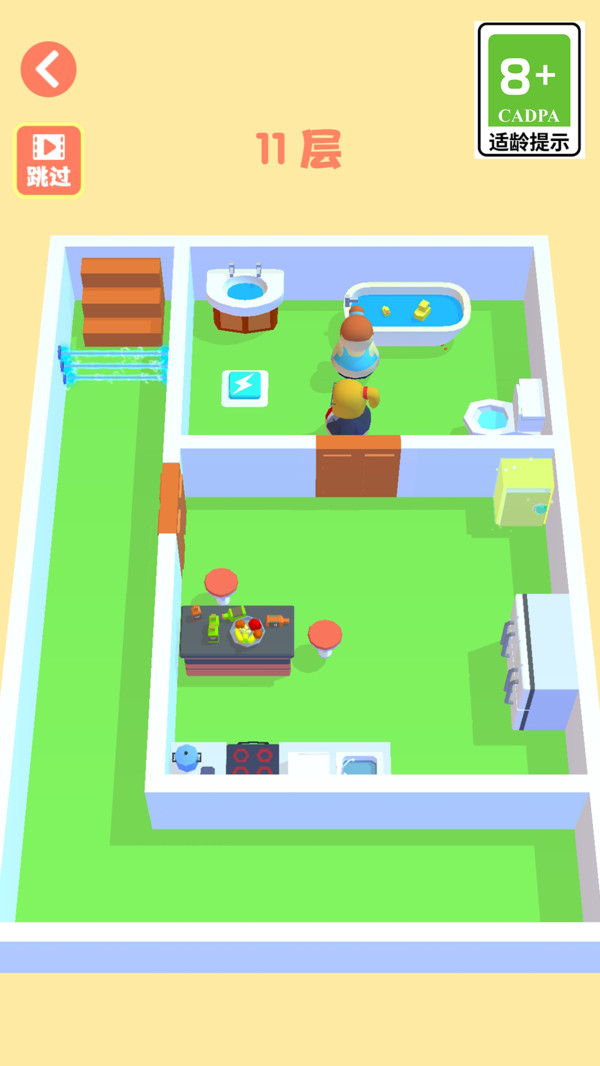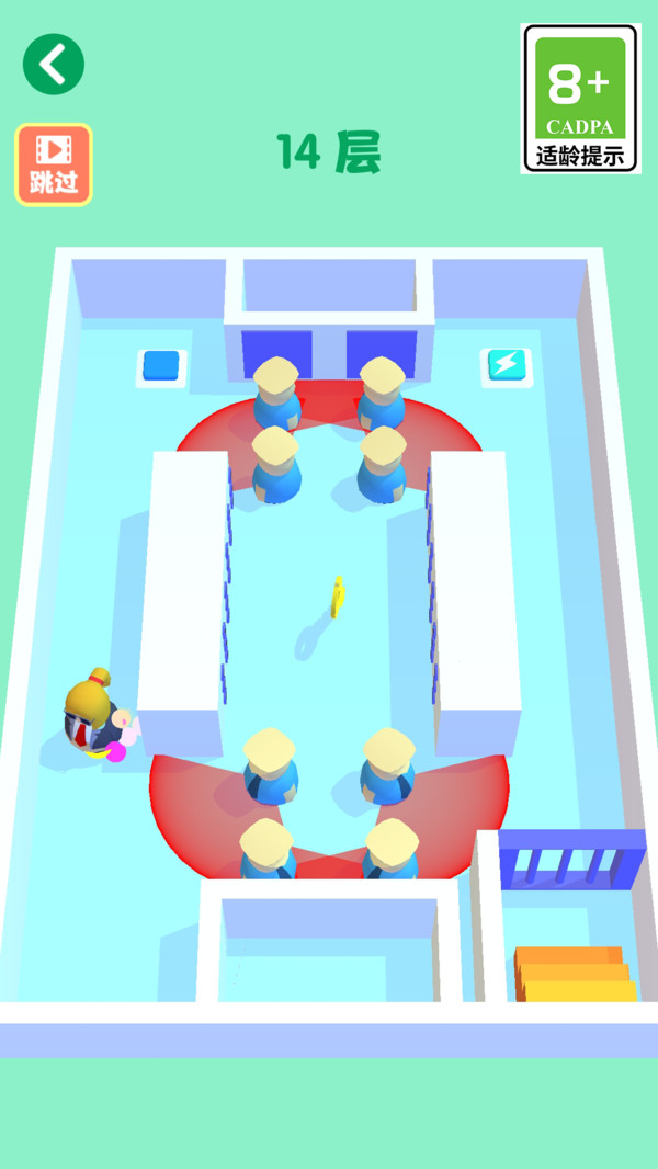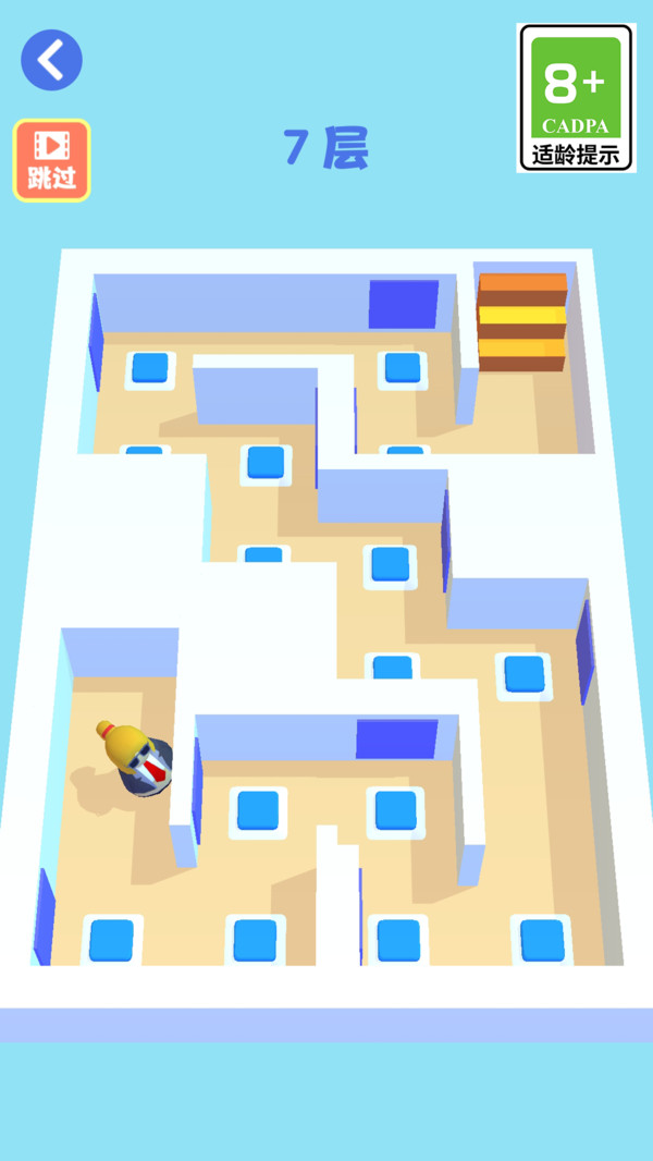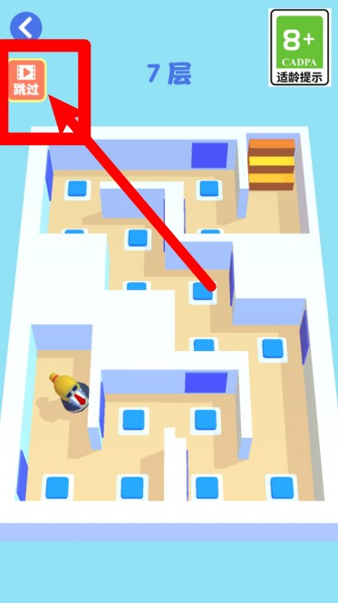 1.跳过功能:点击左上角的跳过按钮即可通过广告直接跳过当前关卡,帮助玩家在遇到困难时快速进入下一层继续挑战。