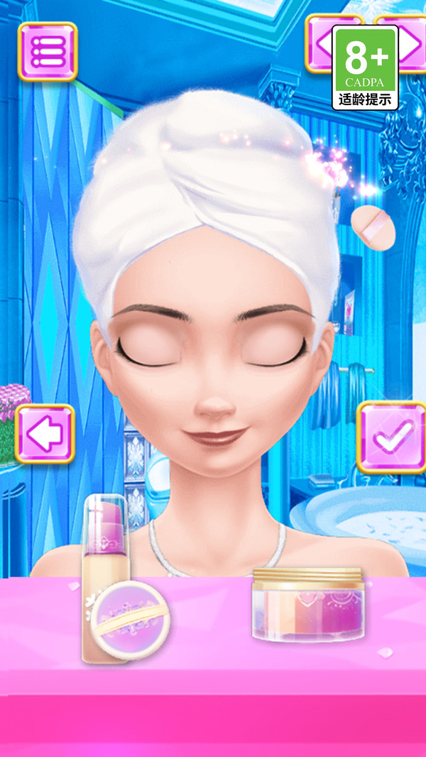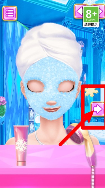 2.美容护理:在美容环节中,完成敷面膜和护理步骤后,点击右侧箭头按钮即可进入下一步,让角色逐步完成婚礼准备流程。