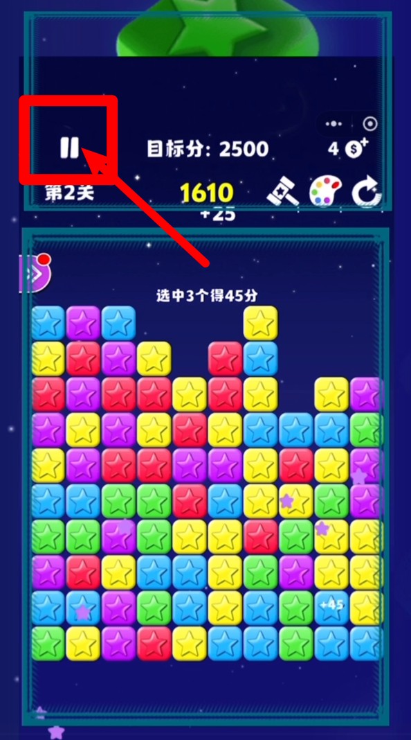 2.暂停功能:点击左上角暂停按钮即可中止游戏进程,方便玩家在必要时休息或调整状态,再继续挑战目标分数。