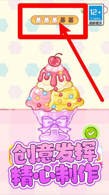 1.评价系统:画面上方的兔子图标代表评价等级,玩家在制作甜品过程中需达到更高评价,才能解锁更多奖励与成就感。