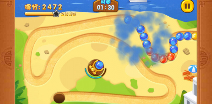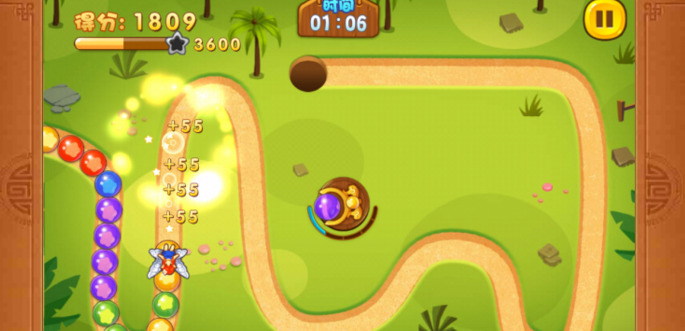 一款经典的祖玛题材的消除类的休闲手机游戏