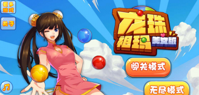 《龙珠祖玛美女版》是一款休闲消除类游戏。游戏中,由红、黄、蓝、绿、青、粉、紫、黑8种颜色的球组成的球链,按照设定好的轨迹向终点行进。玩家要将发射器随机生成颜色球打入球链中,如果击打点形成三个以上同颜色的球,就将这些球消除。
