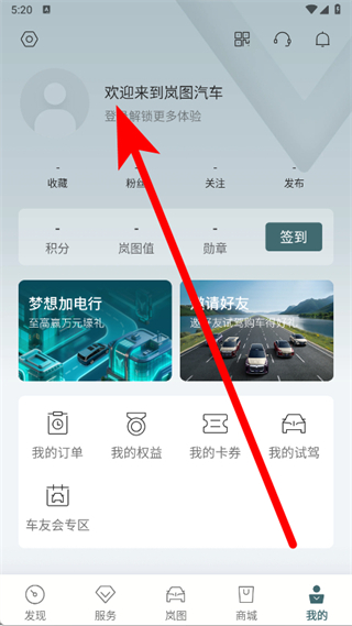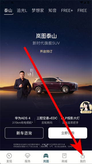 1、打开岚图汽车APP,点击底部我的。
