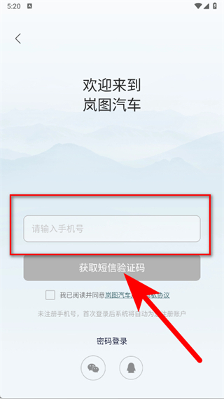 3、在登录页面,输入手机号后点击获取短信验证码。