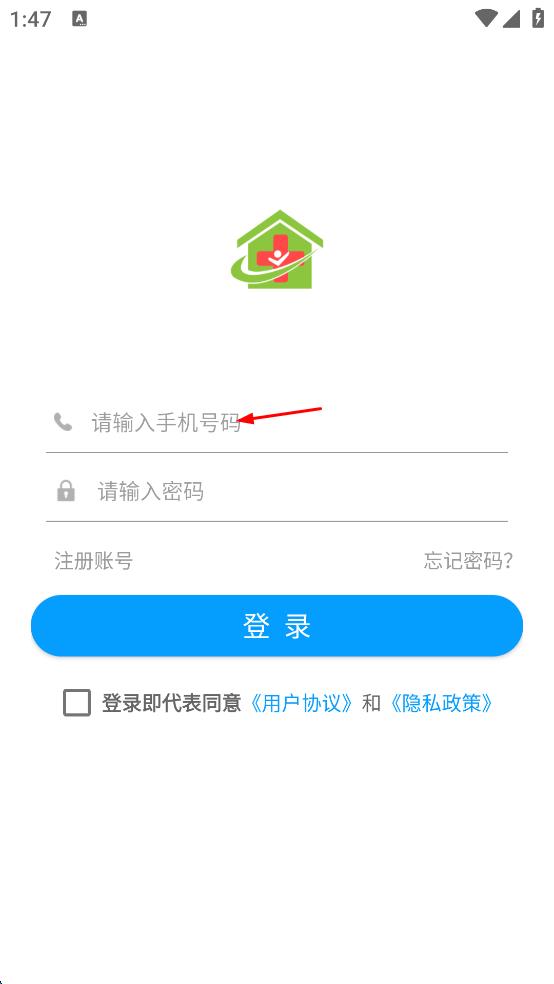 4、勾选登录即代表同意用户协议和隐私政策,然后点击登录按钮。