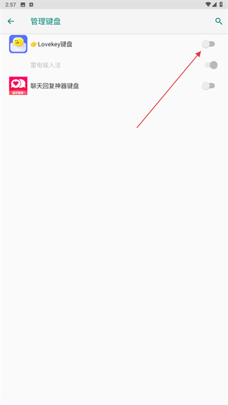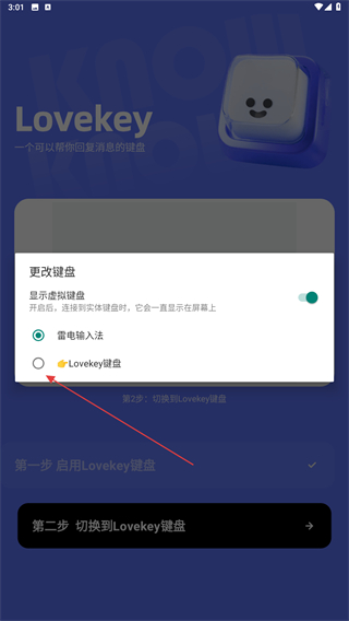 4、开启后,会弹出更改键盘的提示,点击切换Lovekey键盘即可。