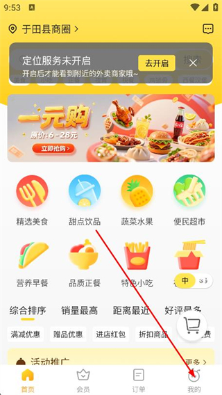 1、打开急先蜂外卖,点击底部导航栏我的选项。