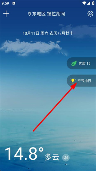 2、在软件主界面,点击空气排行,进入全国空气排行页面。