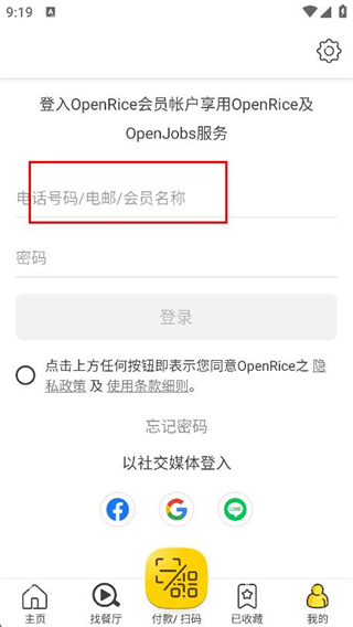1、打开OpenRice,在隐私政策界面点击同意,进入主界面。
