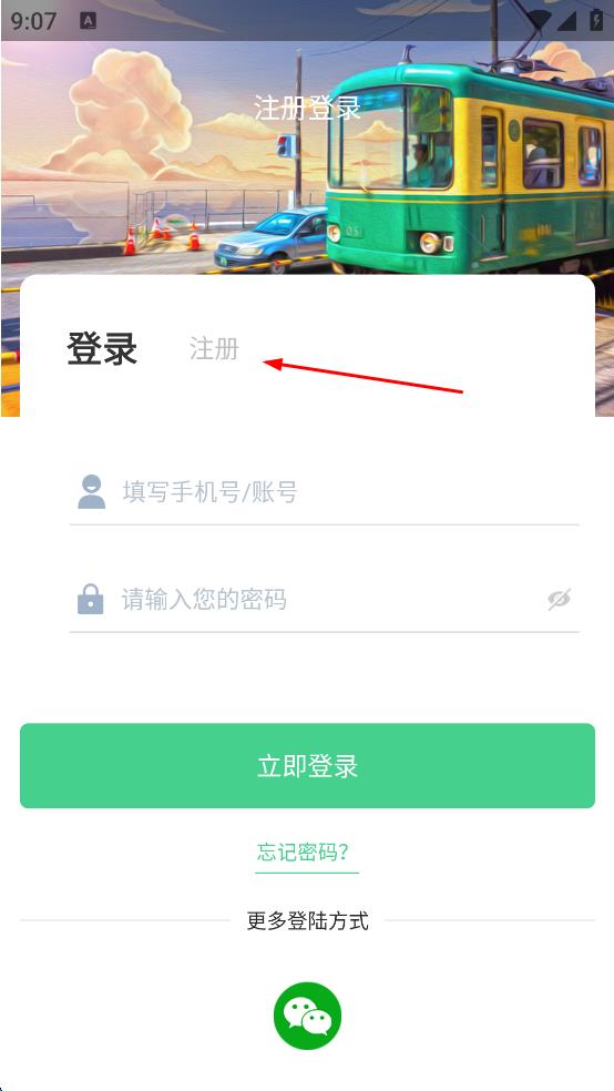 2、进入注册登录界面,在登录和注册选项中,点击注册选项,切换到注册页面。