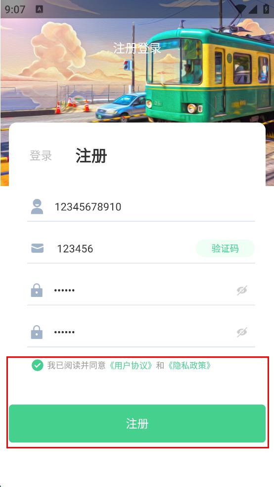 4、勾选我已阅读并同意用户协议和隐私政策,然后点击注册按钮,完成注册操作。