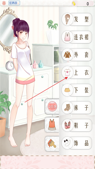 4、完成上衣、下装、鞋子等整体搭配后,点击交任务提交换装成果。