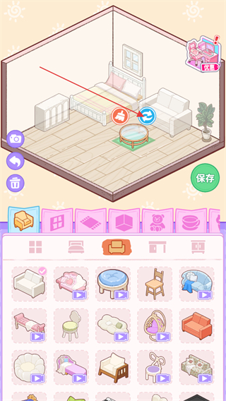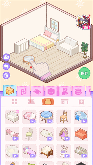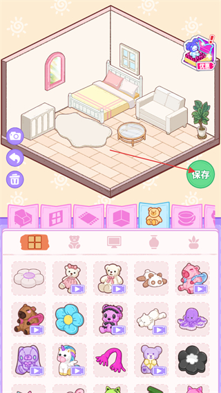 4、从地毯等装饰栏选地毯铺上,再添加小摆件,完成后点保存。