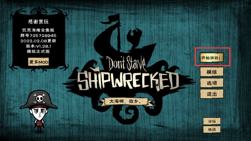 1、启动游戏后点击开始按钮,即可进入这款充满挑战性的航海生存冒险游戏世界。