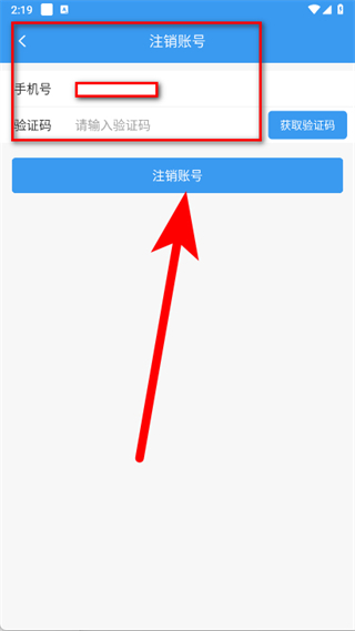 4、输入手机号和验证码,点击注销账号,完成注销。