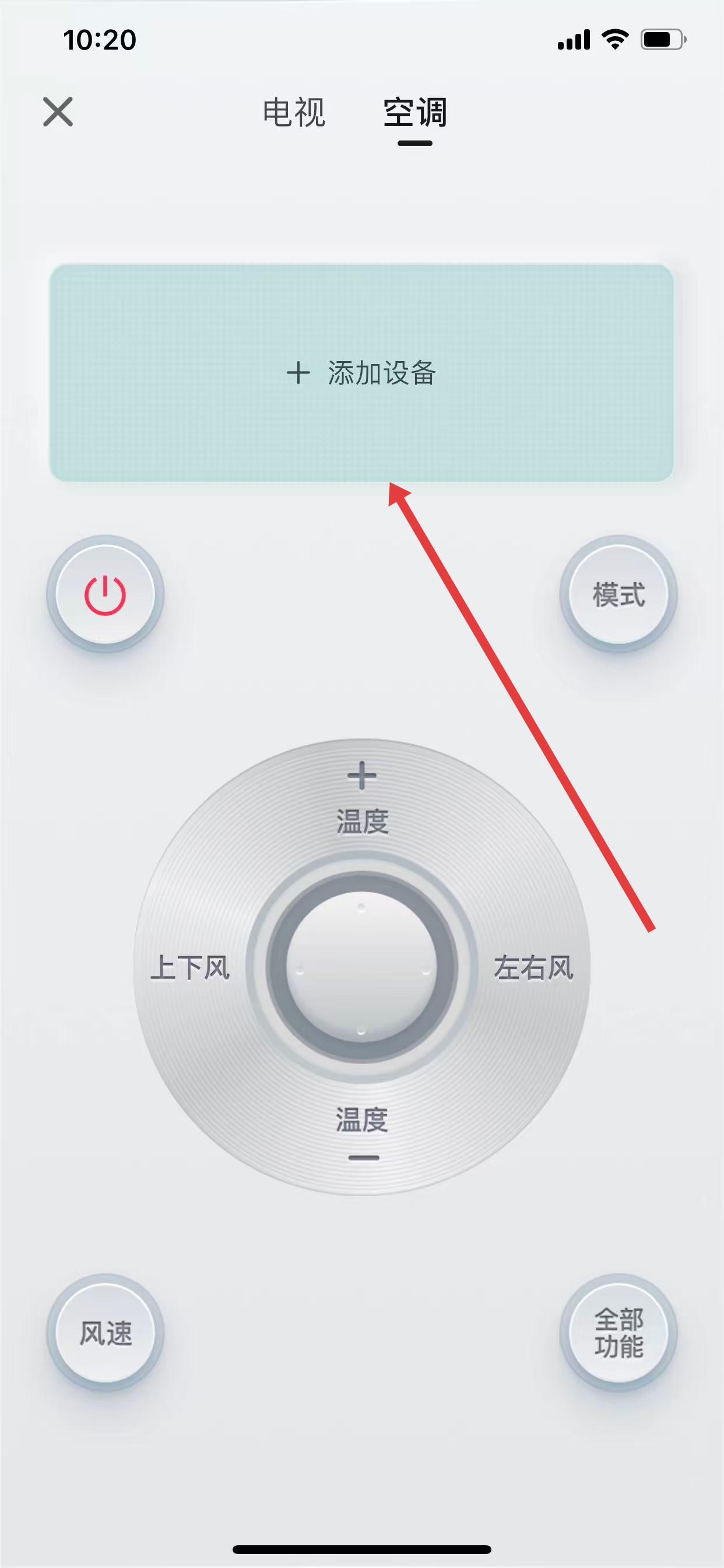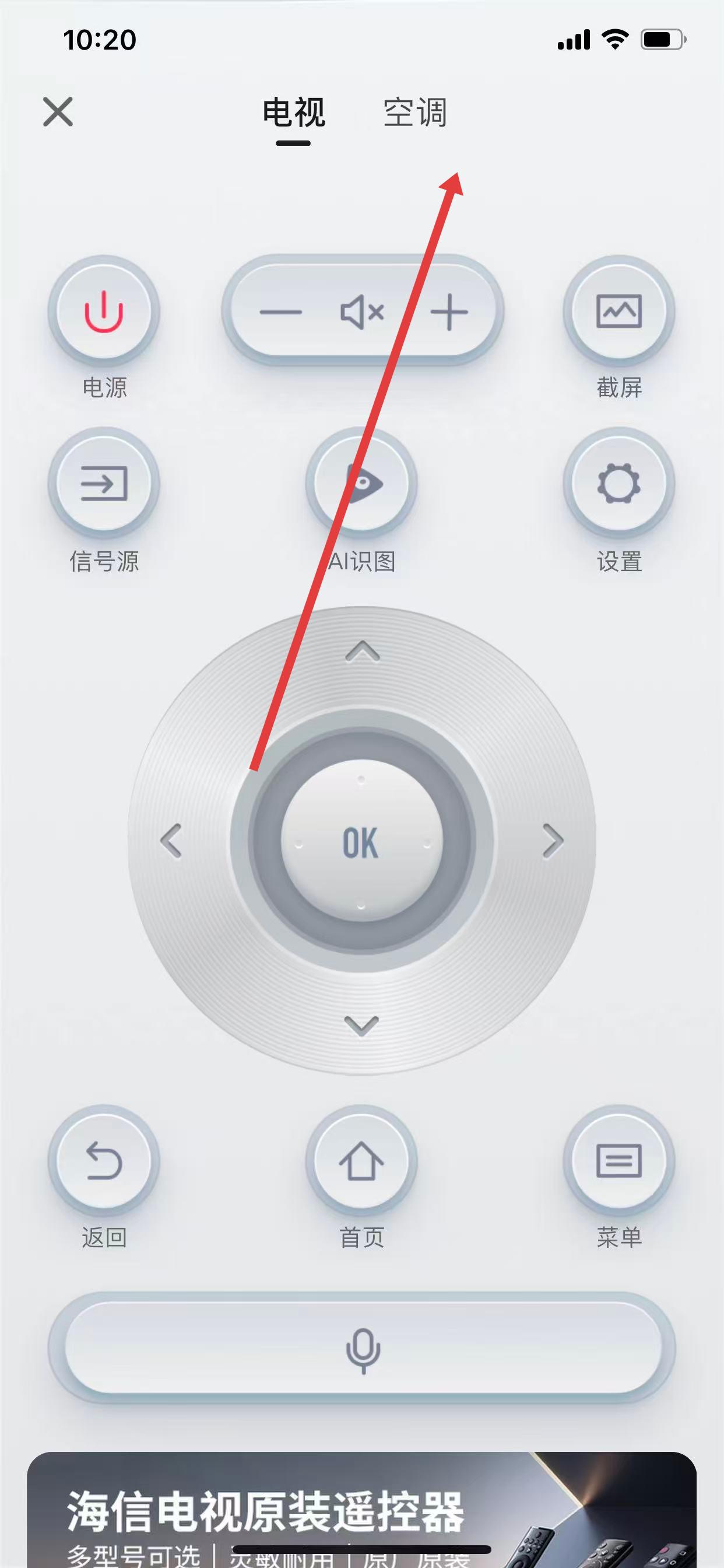 2. 在弹出的遥控界面中,点击上方的空调选项。