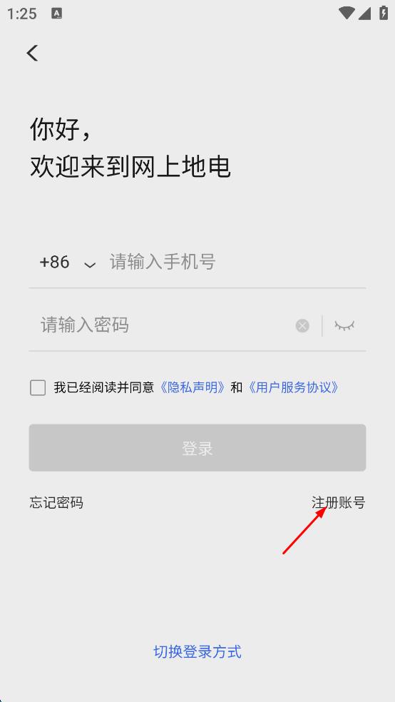 3、在登录注册页面,点击“注册账号”,进入注册页面,输入手机号,点击“发送验证码”。