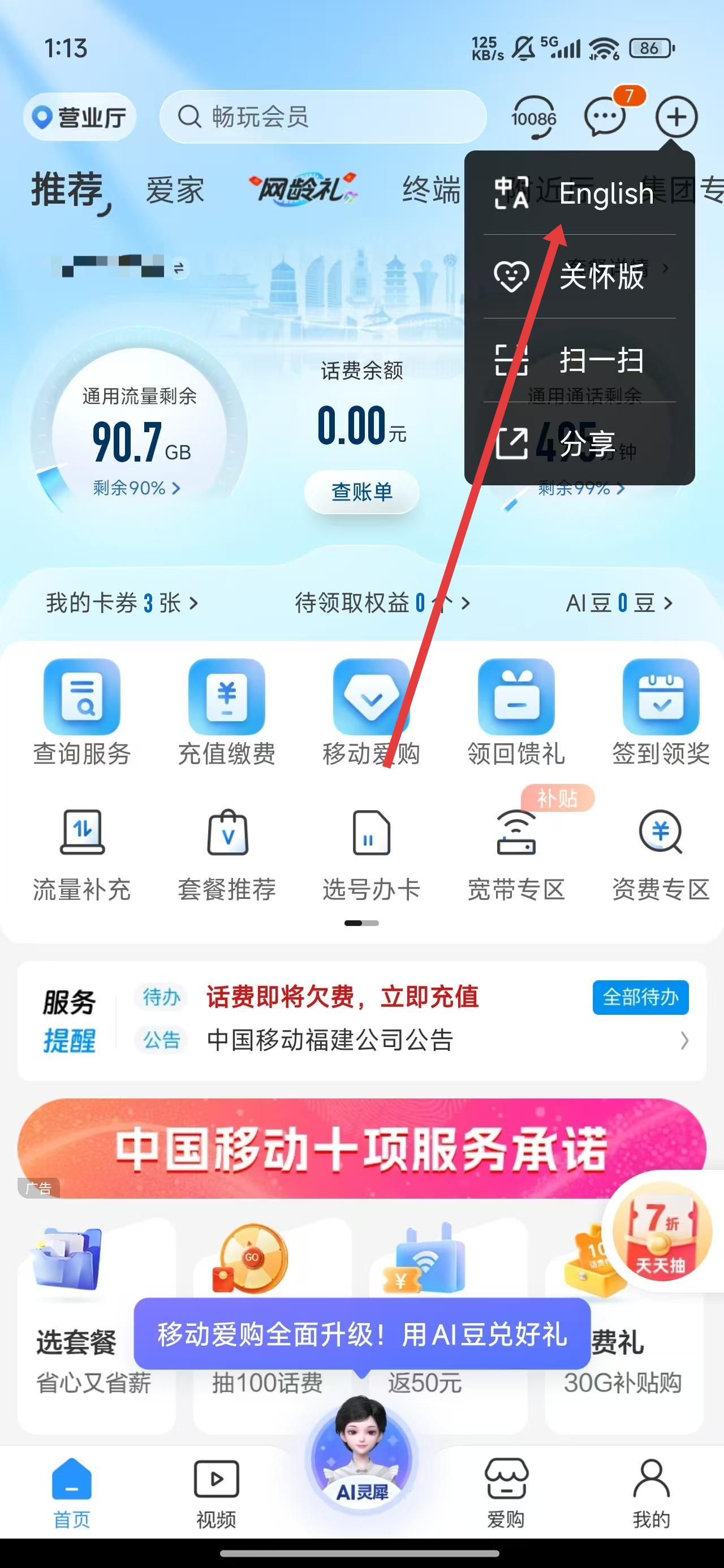 1、首页交互优化:充话费、充流量、办套餐便捷引导,基础服务一键直达。