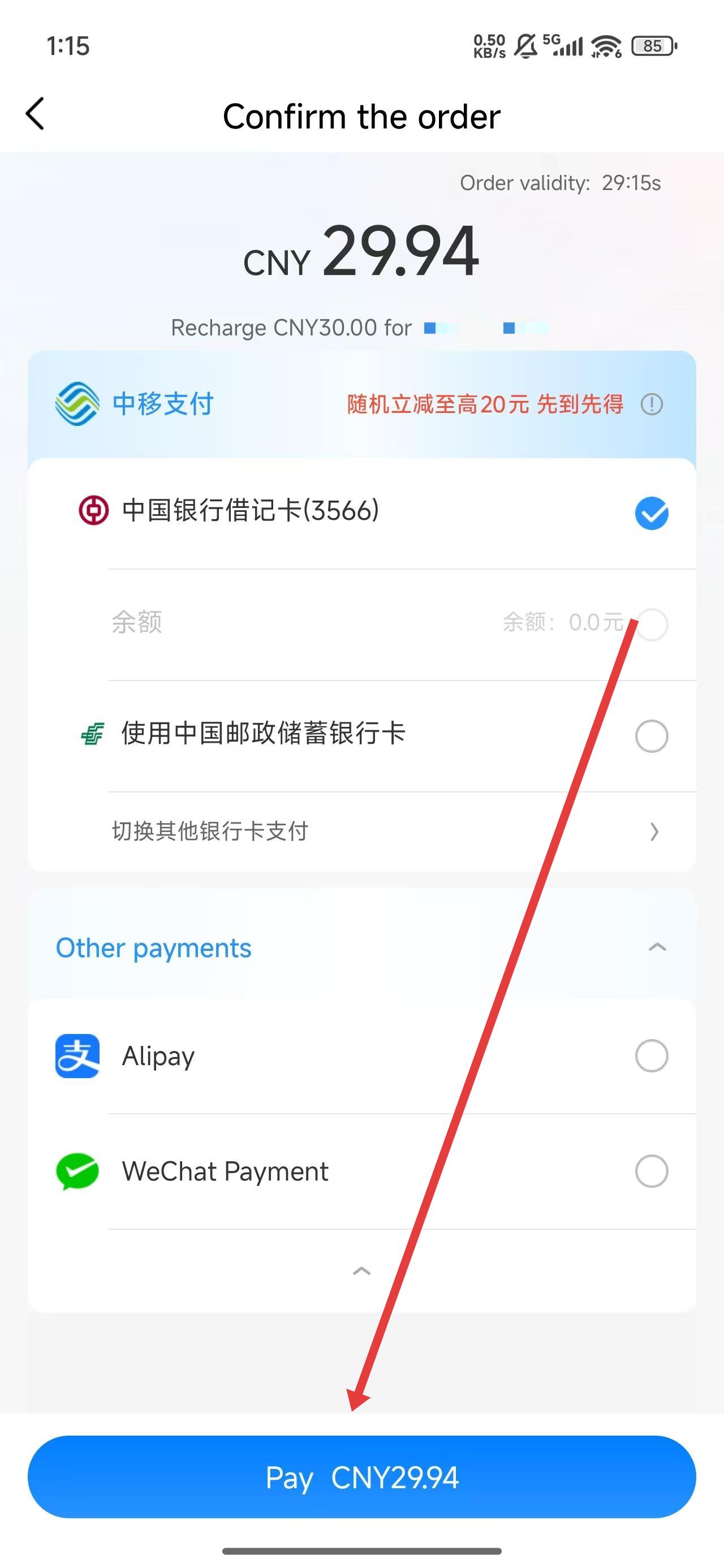 4、在跳转到支付页面中,选择要支付的方式后,点击底部的蓝色按钮即可完成支付操作。