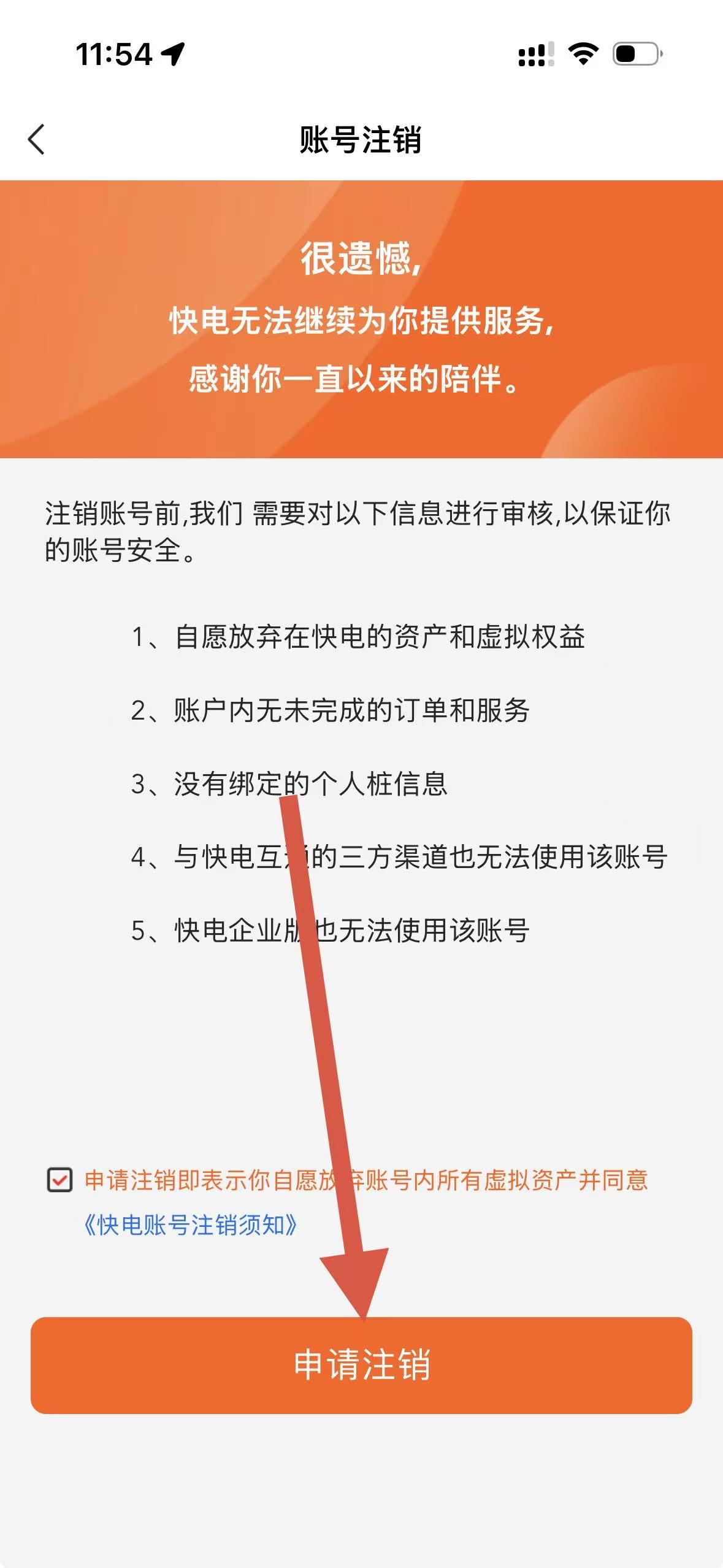4、在账号注销页面,勾选同意协议并点击申请注销按钮,完成账号注销操作。