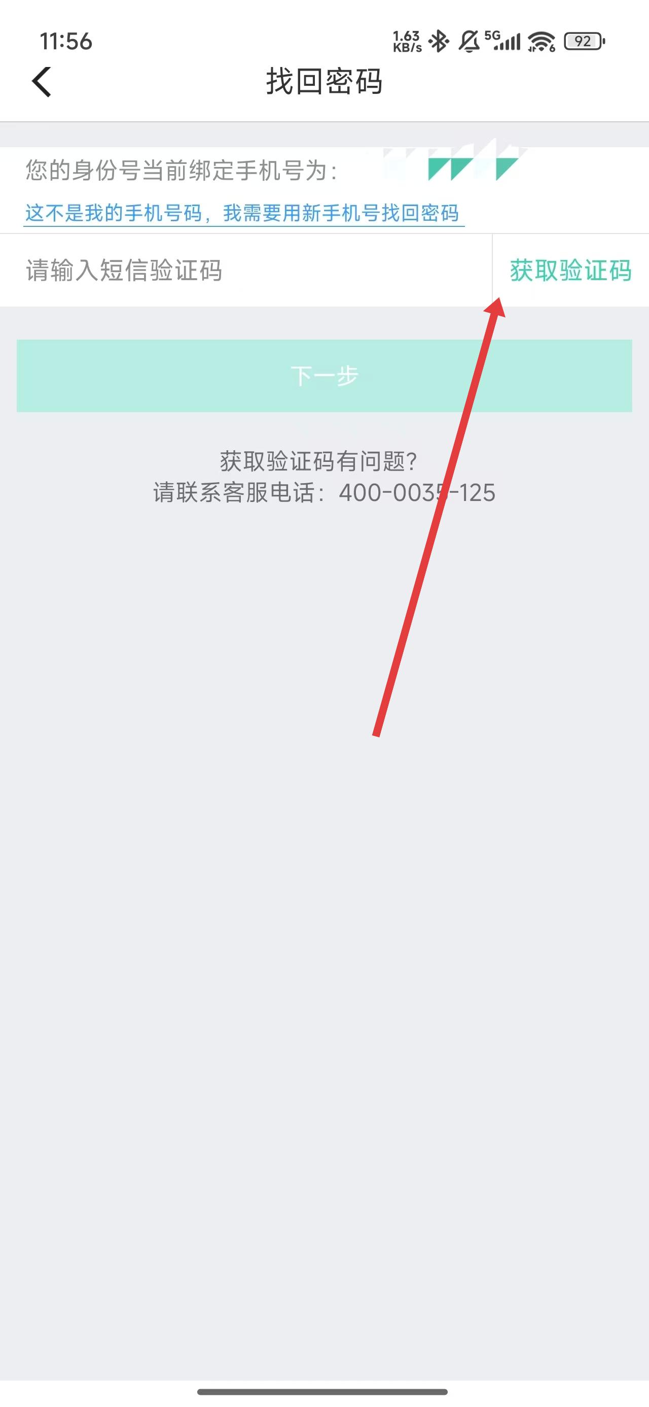 3、通过点击获取验证码按钮,等待填写收到的验证码后,进入最后一步。