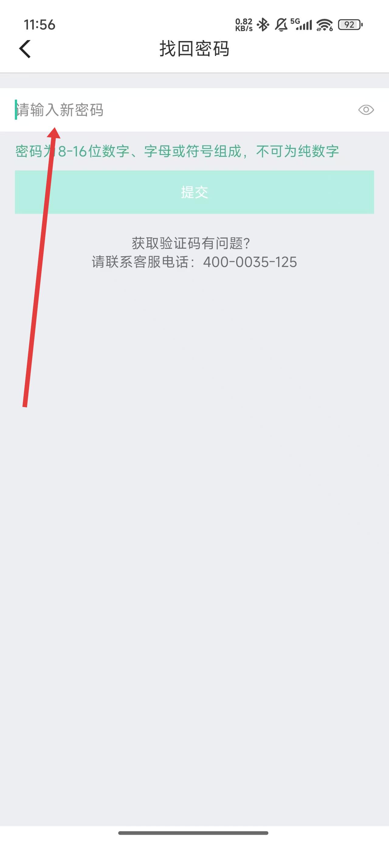 4、在输入框中输入新密码后,点击提交按钮即可完成找回密码操作。