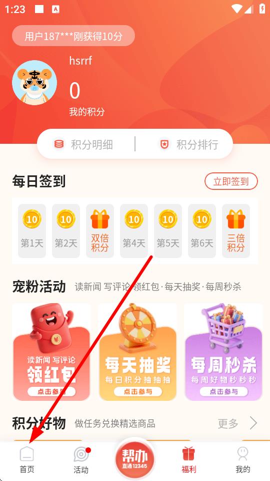 1、打开中山日报app,点击底部导航栏中的首页进入首页界面。