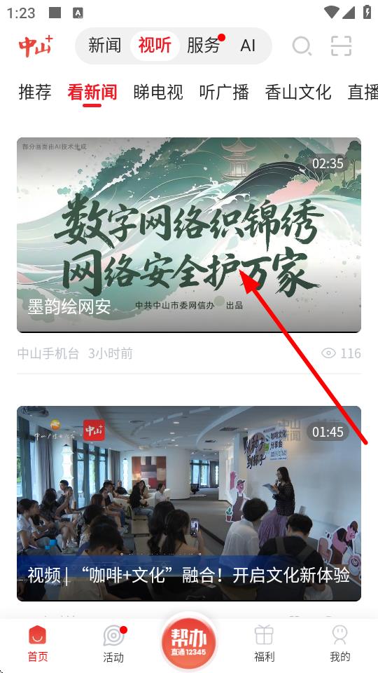 4、进入新闻详情页后,即可观看新闻视频或阅读文字内容。