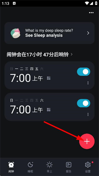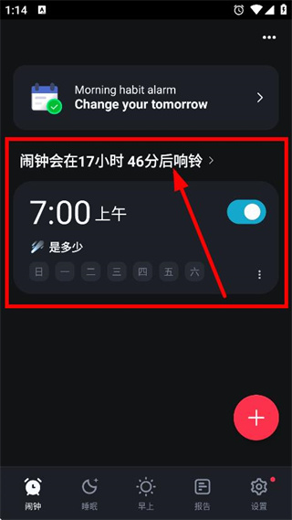 4、设置完成后,可在闹钟页面查看习惯闹钟的响铃时间等信息。