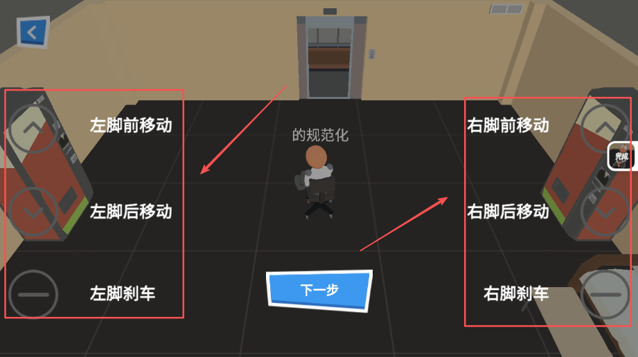 2、使用六个按钮控制转椅移动掌握不同操作方式技巧应用,协调左右脚动作配合实现精准控制。